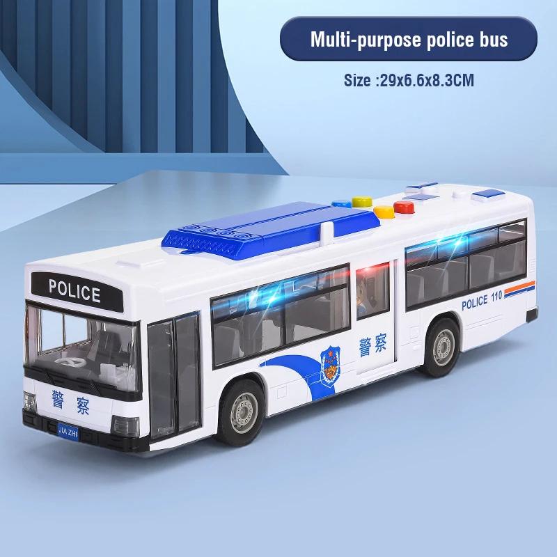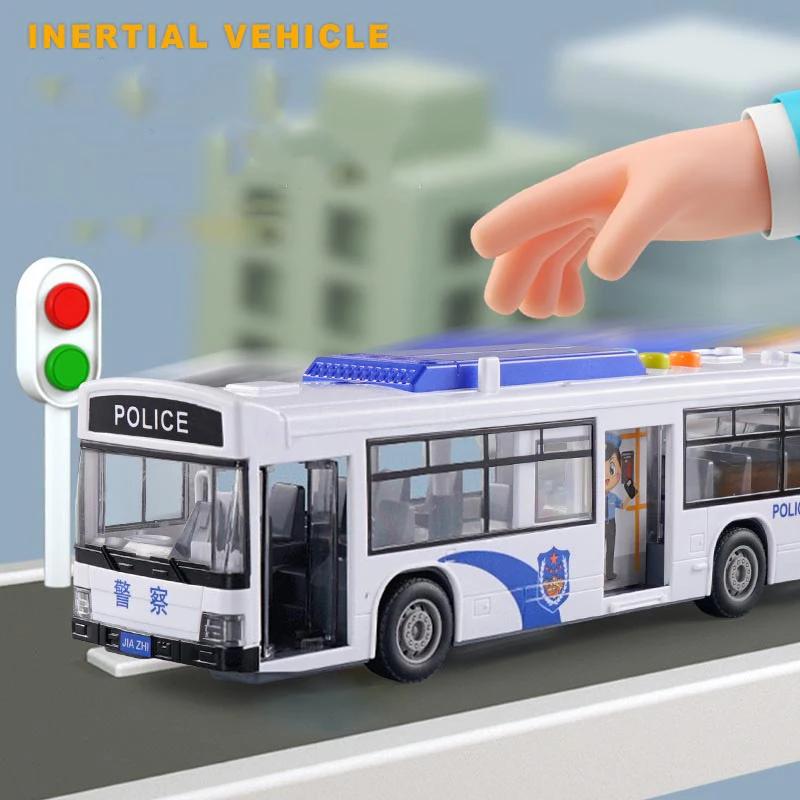 Детская инерционная модель полицейской машины с оттягиванием назад, модель автобуса, модель транспортного средства со светом, коллекционная игрушечная машина для мальчиков, девочек, детей, подарки на день рождения