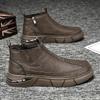 Новые однотонные мужские ботинки с круглым носком и средней молнией, качественные, повседневные, модные, универсальные мужские ботинки на плоской подошве для рабочей одежды