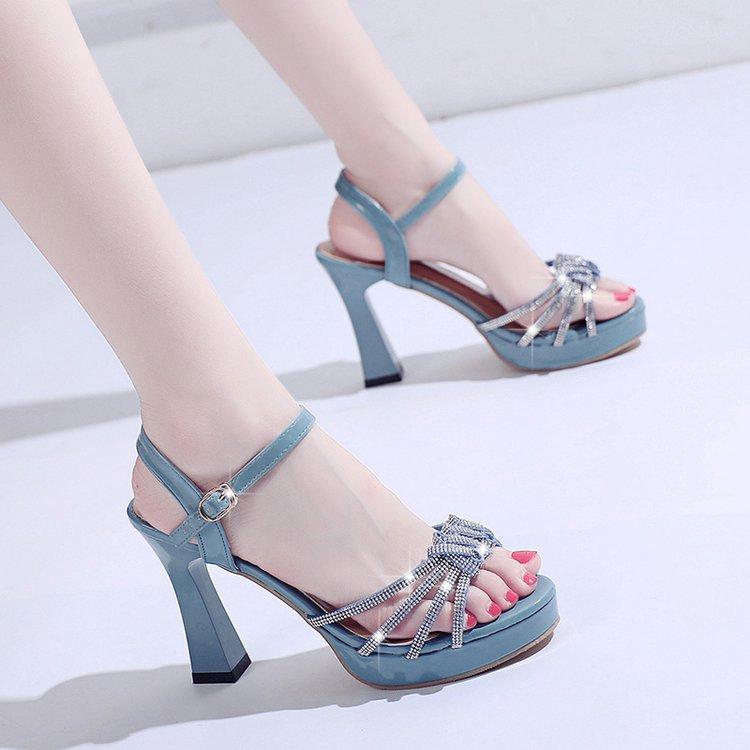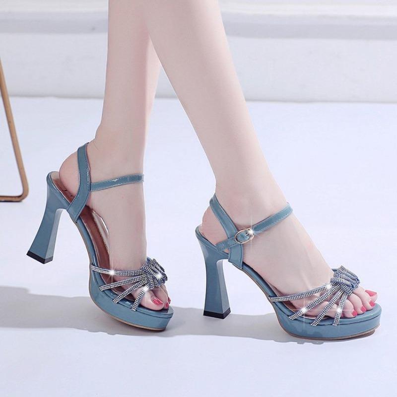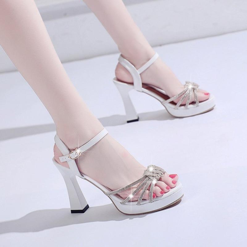 Модные босоножки с открытым носком на высоком каблуке женские летние новые с ремешком на щиколотке и стразами на шпильке сексуальная женская обувь