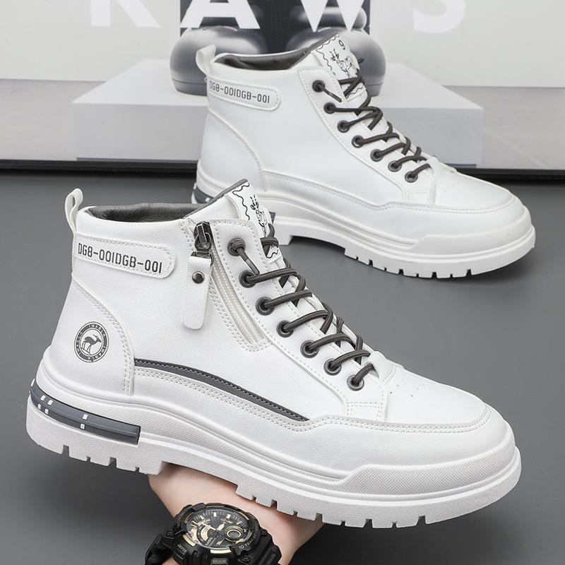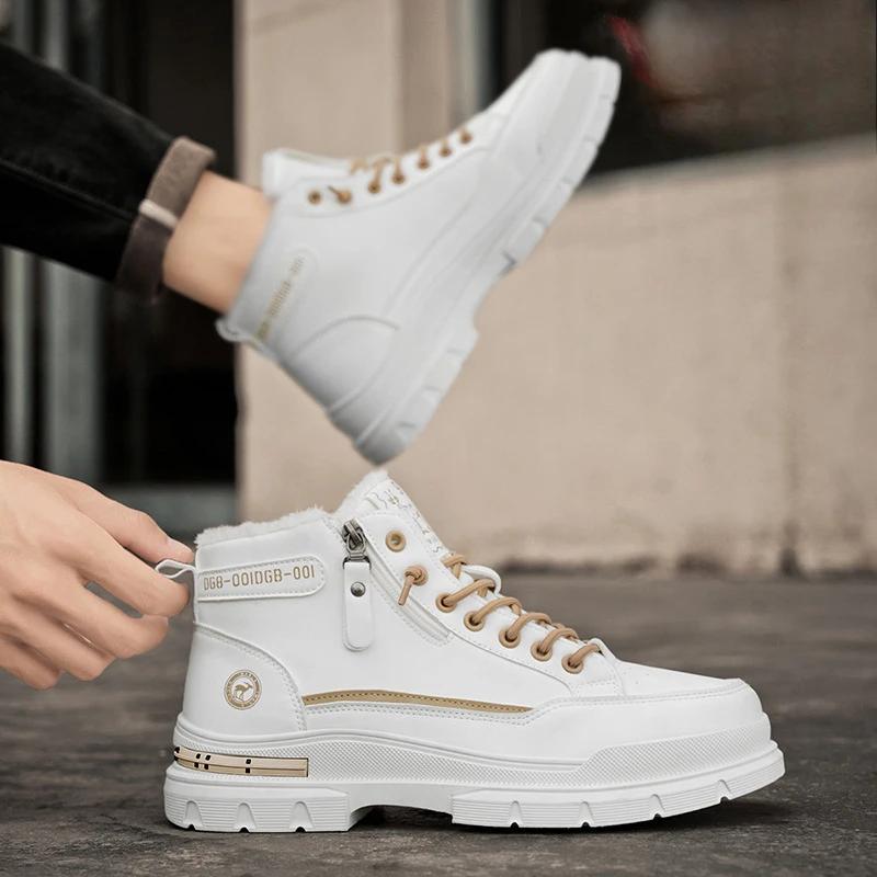 Зимние мужские теплые ботильоны Модные универсальные белые кожаные туфли Уличные нескользящие кроссовки для мужчин Мотоциклетные зимние ботинки Ботинки
