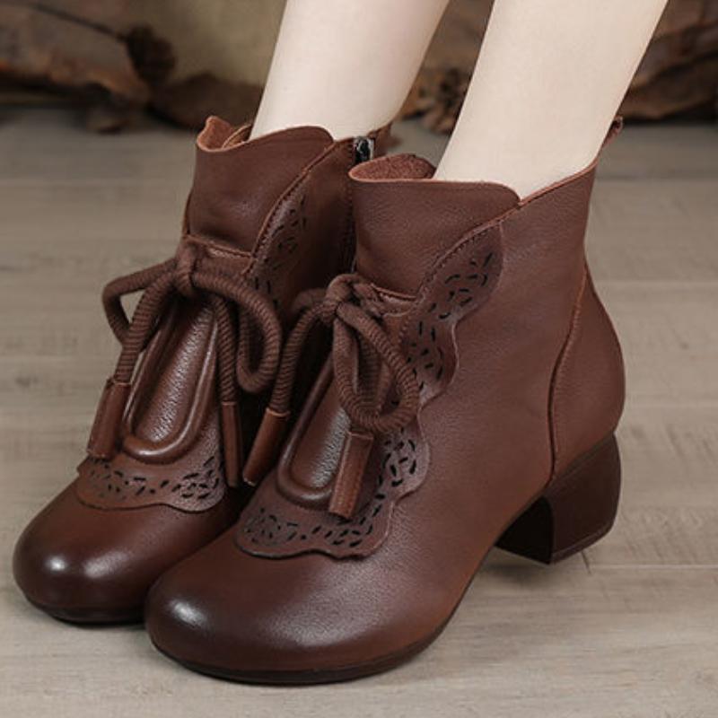 Женские кожаные ботинки Этнический стиль Ретро Мамины короткие ботинки Мягкая подошва Круглый носок Повседневная Нескользящая обувь Sapatos Femininos — купить товар онлайн с бесплатной доставкой по всему миру!