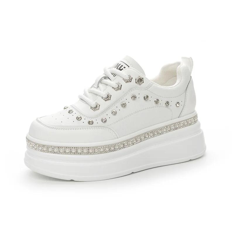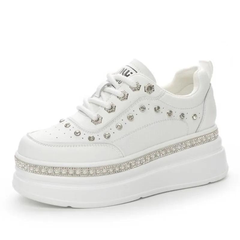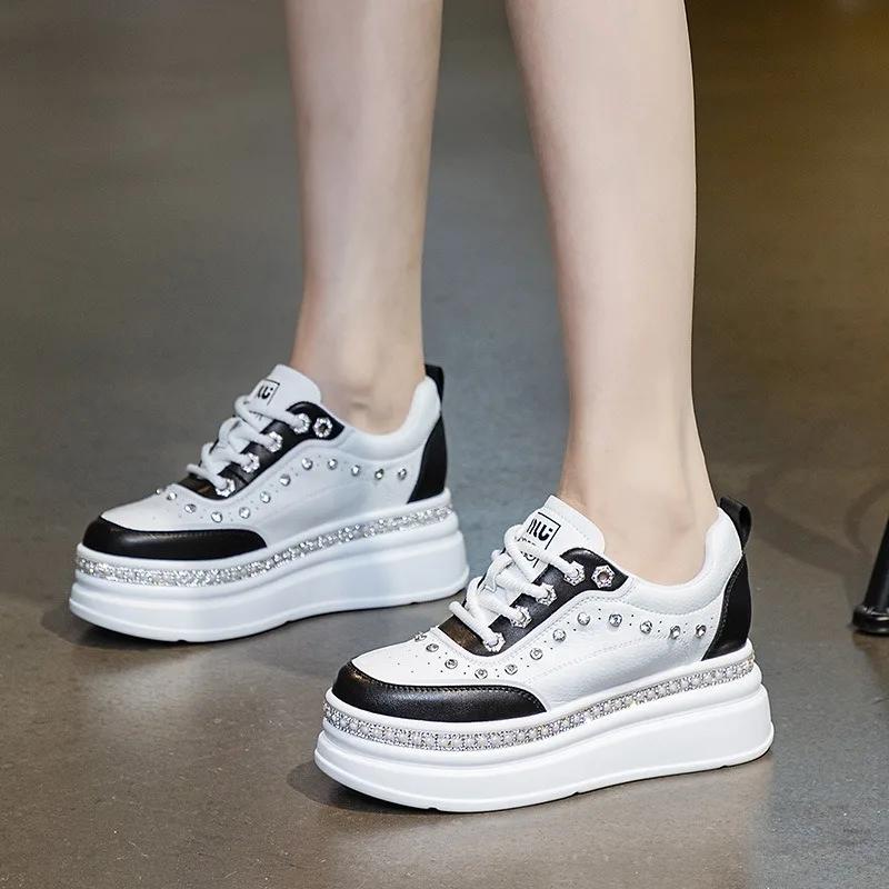 7 см натуральная кожа женская мода повседневные блестящие толстые кроссовки на платформе танкетке вулканизированные осенне-весенние скрытые каблуки женская обувь