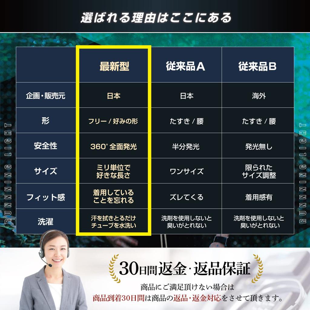 ・[✨Надежный Торговый Знак❢] Номер заявки на товарный знак: Заявка на товарный знак 2022-36710. Это бренд с зарегистрированным товарным знаком и репутацией безопасности и надежности.. Мы стремимся расти вместе с нашими клиентами как оригинальный бренд, принося радость и восторг нашим клиентам! Пожалуйста, покупайте с уверенностью. ・[✨Светодиодный беговой фонарь в форме трубки с полной яркостью 360°❢] Этот беговой фонарь наконец-то был завершен на основе отзывов клиентов! Это продукт, который стремится к яркости и безопасности на 360°! Яркий светодиод, излучаемый источником питания, отражается от прозрачной трубки, делая ее видимой издалека! ・[✨Прикрепите его куда хотите❢] Его можно разрезать до желаемой длины, и он очень гибкий, что позволяет придать ему любую форму, обеспечивая вам большую гибкость и подходя для различных типов фигуры! (Примеры: В полный рост, пояс, ремень, лодыжка). Его также можно использовать в различных местах, например, на детском рюкзаке, велосипеде-мамачари или даже на домашнем питомце!・【✨Это чрезвычайно заметно, когда оно включено❢Это чрезвычайно незаметно, когда оно выключено❢】 Оно не только чрезвычайно яркое, когда включено, но его также можно выключить одним нажатием кнопки, когда вы заходите в магазин после тренировки или в место, где не хотите выделяться. Он прозрачный и всего 6 мм в ширину, поэтому совершенно незаметен, что делает его универсальным предметом! ・【✨Он водонепроницаем для повседневного использования, поэтому вы можете просто вытереть пот❢