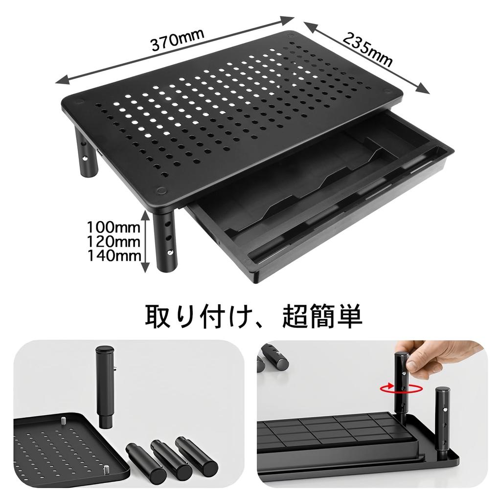 [Стойка для компьютера с отводом тепла] Изготовлена из стали, отводит тепло лучше, чем деревянная настольная подставка.. У него есть отверстия для охлаждения тепловыделения машины, улучшающие вентиляцию и теплоотвод! Эта настольная полка очень рекомендуется для жаркого японского лета.
