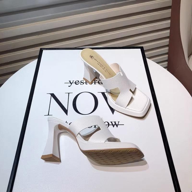 Классические и элегантные женские шлепанцы на высоком каблуке 2024Новые кожаные шлепанцы Высокие каблуки Горячо продаваемые Летние повседневные босоножки на высоком каблуке