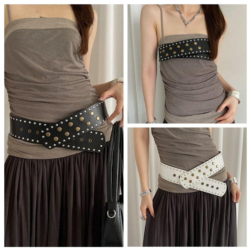 Gothic Wide Women's Belt Snap Button Dress Jeans Belt Vintage Rivet Waist Belt Spicy Girls