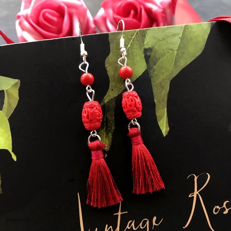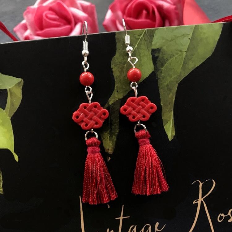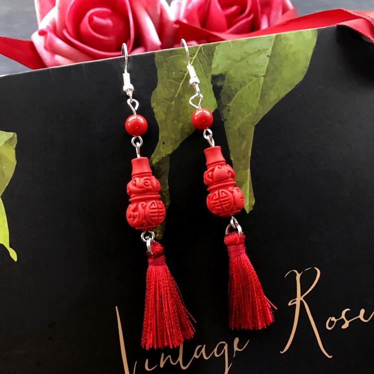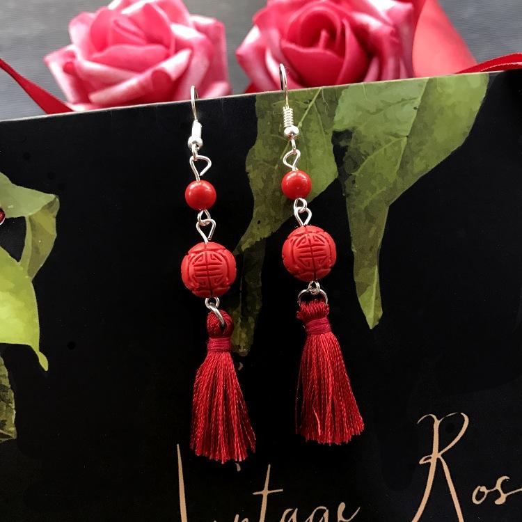 Классические модные красные киноварные серьги с бахромой, ретро романтичные серьги с розой, женственные универсальные свадебные серьги