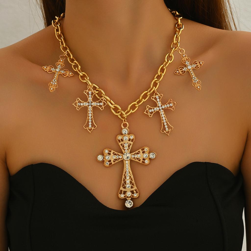 Новое женское колье Геометрический крест с бриллиантами Дизайнерская подвеска Цепочка для ключиц Универсальное колье
