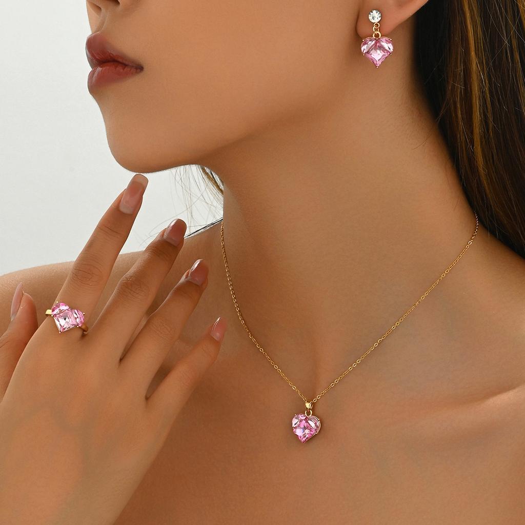 Инс Япония и Корея милый ветер женский набор кольцо-ожерелье нишевая любовь инкрустированный цирконом дизайн серьги-пусеты цепочка для ключицы
