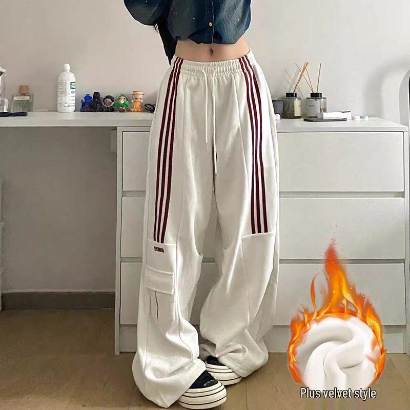 Почувствуйте максимальный комфорт и стиль в этих женских ретро спортивных брюках карго с высокой посадкой.. Эти спортивные штаны широкого кроя, изготовленные из прочного полиэстера, идеально подходят как для весны, так и для осени.. Вязаная ткань добавляет текстуры, а деталь с тремя полосками подчеркивает их спортивный шарм.. Практичные боковые карманы обеспечивают удобное хранение, что делает их идеальными для повседневных прогулок или занятий спортом.. Эти универсальные спортивные штаны — незаменимое дополнение к любому гардеробу, легко сочетающее в себе ретро-стиль и современную функциональность.