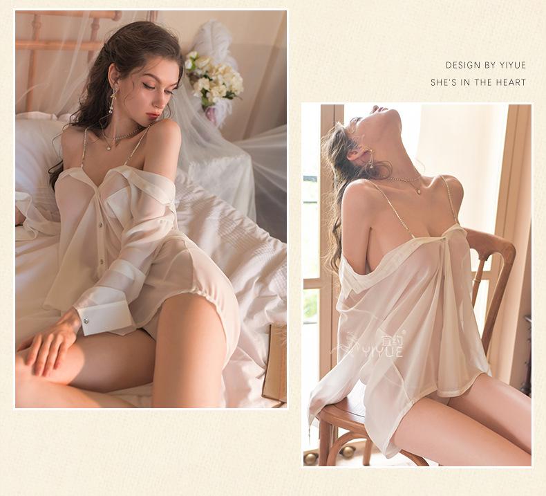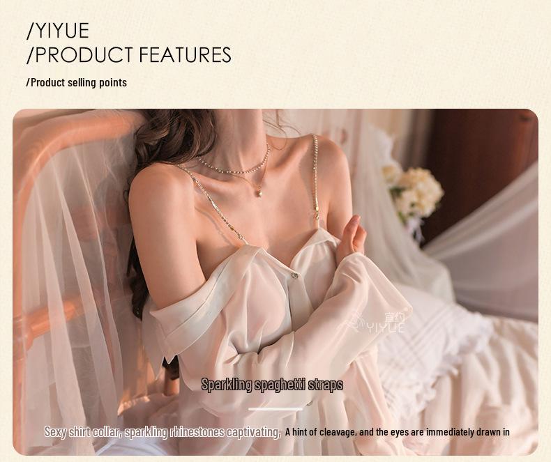 Yi Yue Женская сексуальная майка с бриллиантовой цепочкой, пижама - Эротичная ночная сорочка из прозрачного шифона, стиль 8476