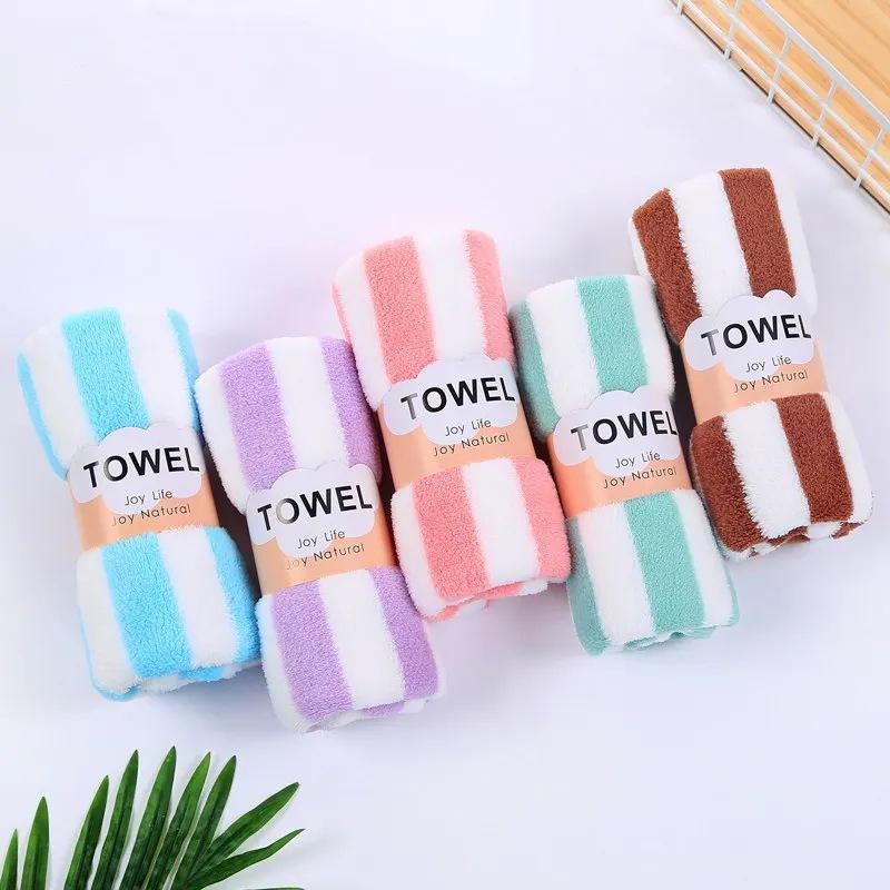 Премиальное полотенце для лица из кораллового флиса - Впитывающее, Быстросохнущее, Не линяющее, Полосатое банное полотенце для взрослых