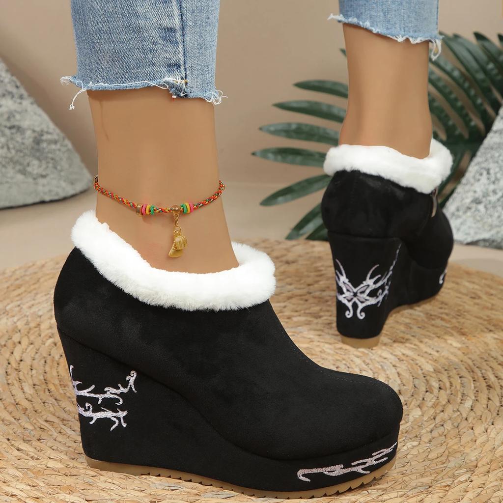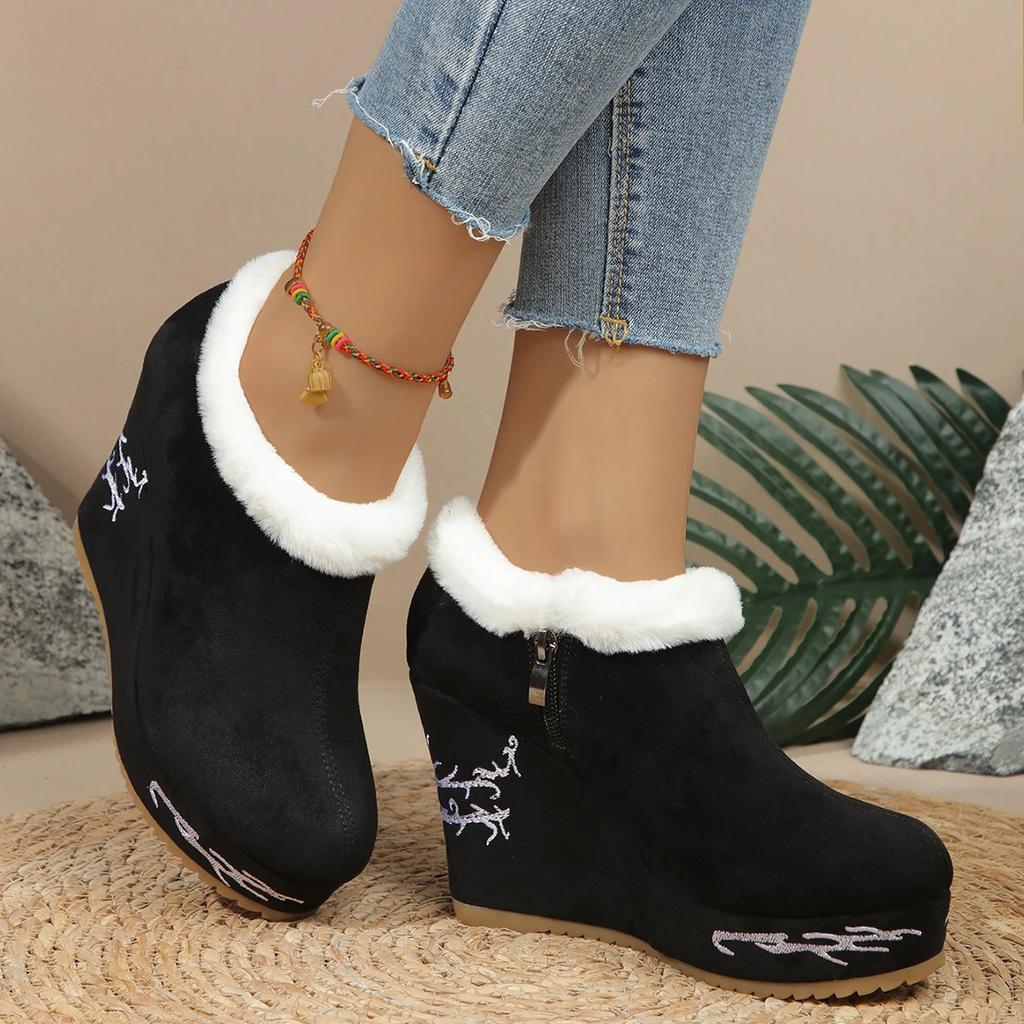 Женские ботинки 2024 года, новые зимние модные туфли на танкетке для женщин, удобные уличные теплые ботинки на платформе, женские ботинки Zapatos De Mujer