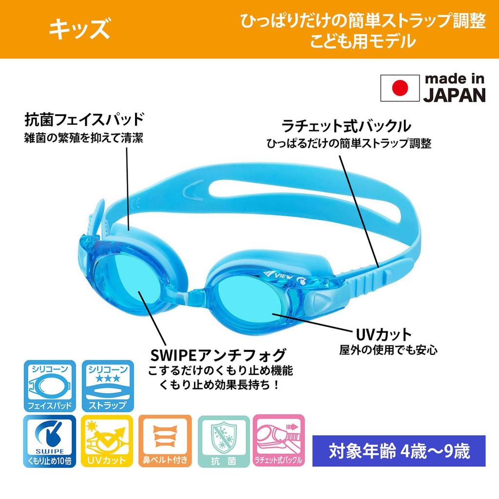 View Плавание Сделано для Детей Возраста с SWIPE Легкий Ремешок УФ и Модель V780JSA BK Очки, Япония, 4-9, Функция Анти-Туман, Регулировка, Защита,