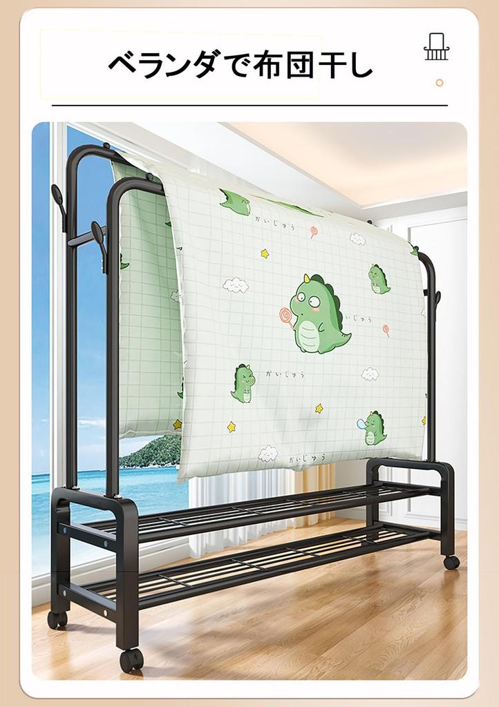 Одежда Taiyo no Sakana Вешалка для одежды большой вместимости с подвешиванием Легко и Включает ролики для удобной сушки и хранения Двойная с полкой,