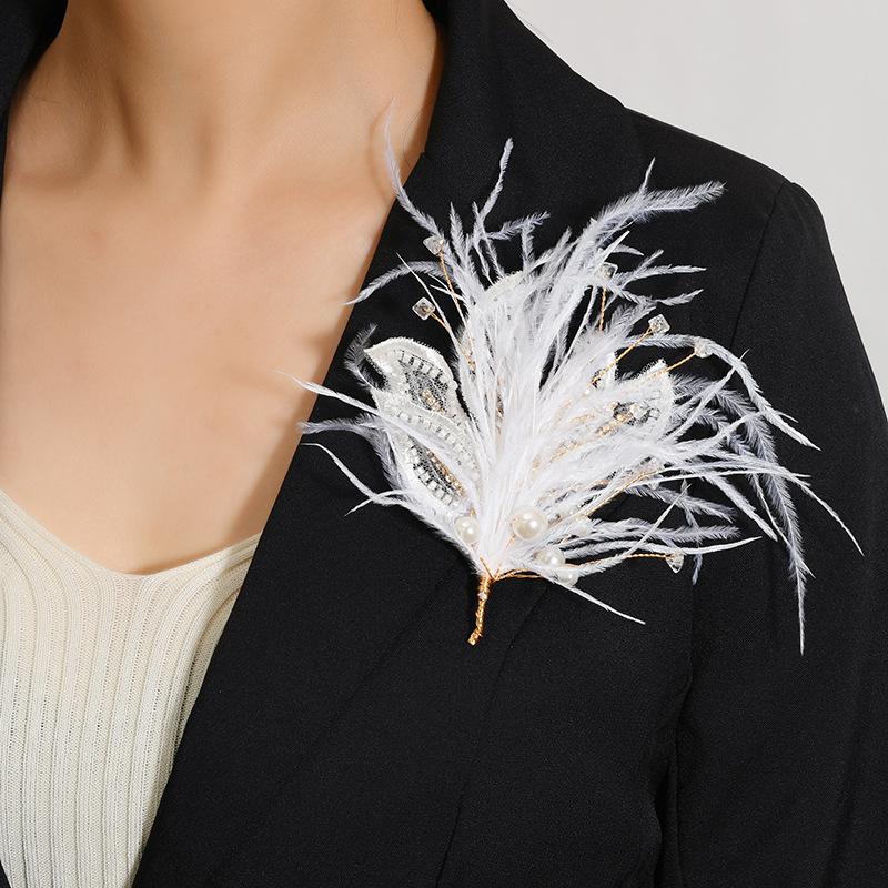 Супер фея перо жемчужная брошь женская элегантность темперамент булавка вечеринка пальто высококлассная корсажная заколка аксессуары