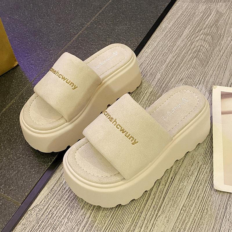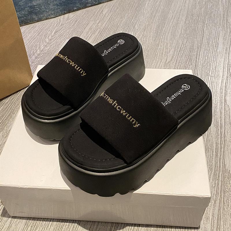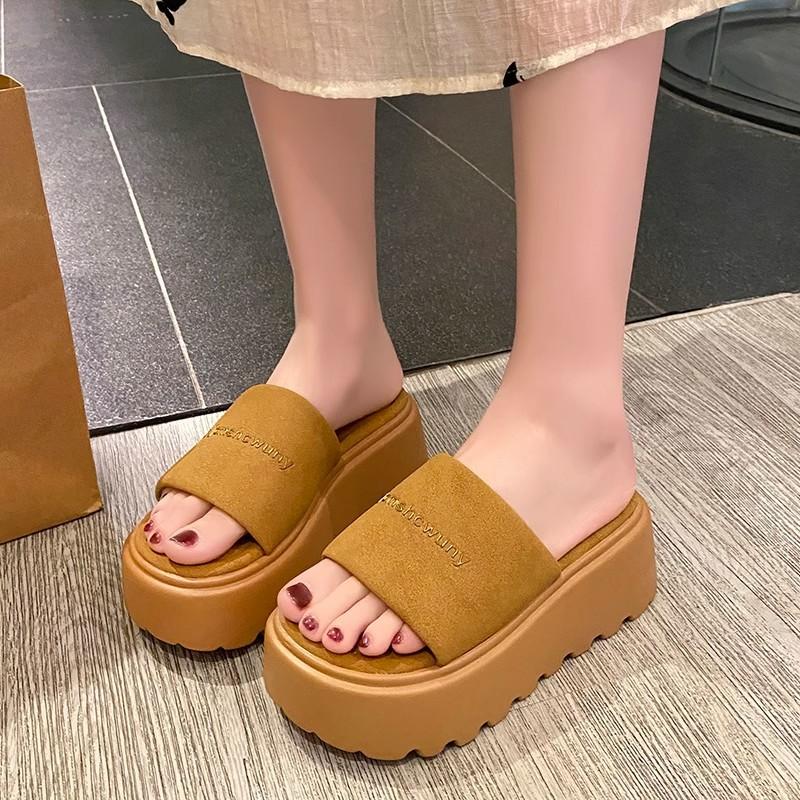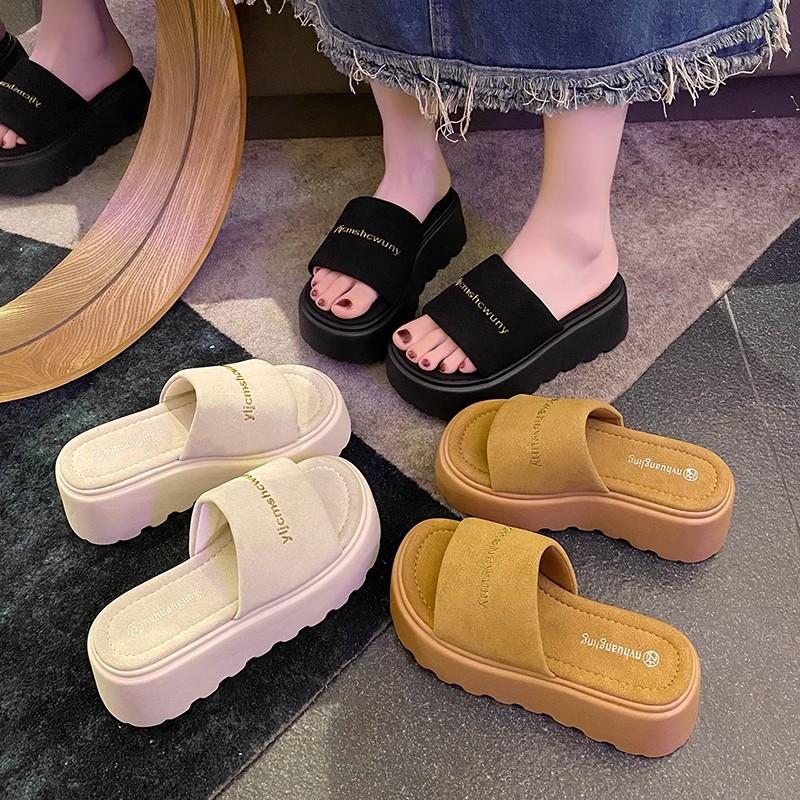 Шлепанцы на толстой подошве из одного слова для женщин для ношения весной и летом новые маленькие повседневные сандалии сандалии на танкетке