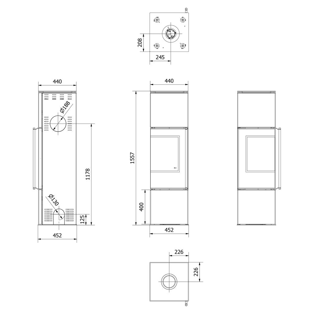 KRATKI REN M/L Stove 7 kW Ø 150 Black Self-Closing Installation Kit