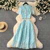 Стиль светской львицы Вязаные крючком рукава-буфы Высокая талия Приталенное кружево — купить товар онлайн с бесплатной доставкой до всему миру!