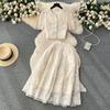 Стиль светской львицы Вязаные крючком рукава-буфы Высокая талия Приталенное кружево