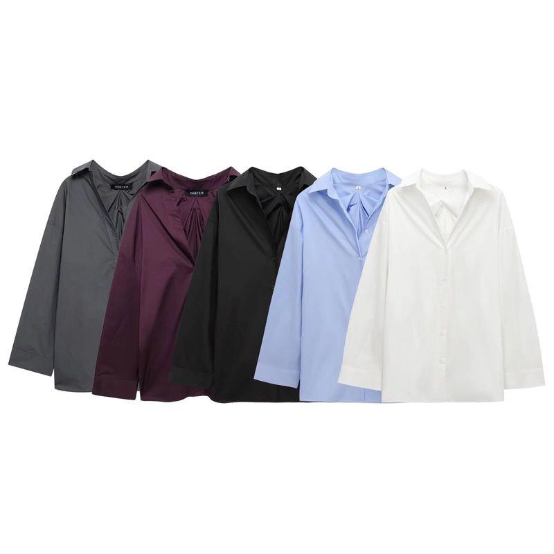 Kaslead New Arrival Women's Clothing Fashion Style Fashion Minimalist Back Pleated Loose Shirt 3067118