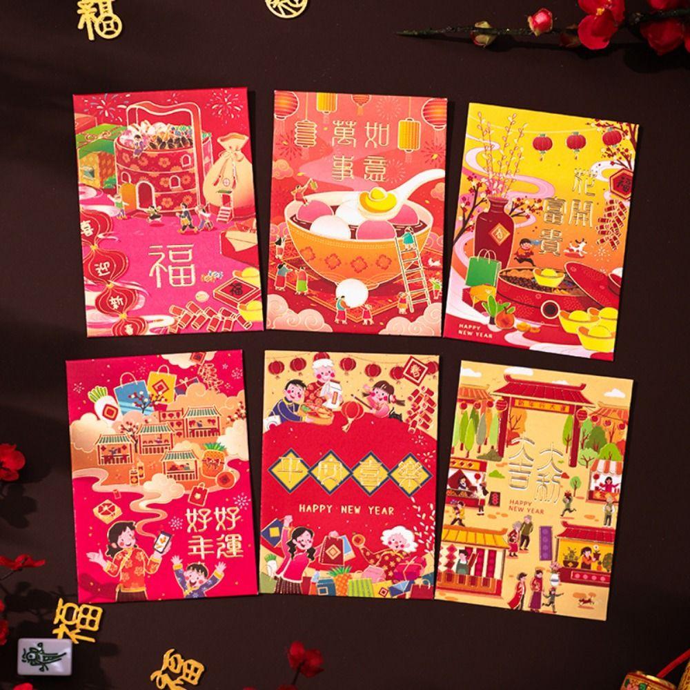 6 Pcs Thickened 2025 Red Envelope Bag Cute New Year Red Packet Lucky Red Pocket New Year's Eve