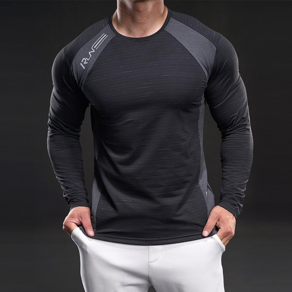 Новая быстросохнущая футболка с длинным рукавом из ледяного шелка, мужская повседневная спортивная эластичная фитнес-футболка для улицы, топ для мужчин