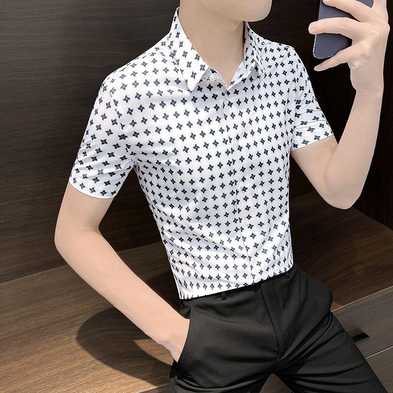Модная мужская приталенная деловая гладкая рубашка корейская одежда лето новая социальная уличная одежда смарт-кэжуал лацкан белая с коротким рукавом топы