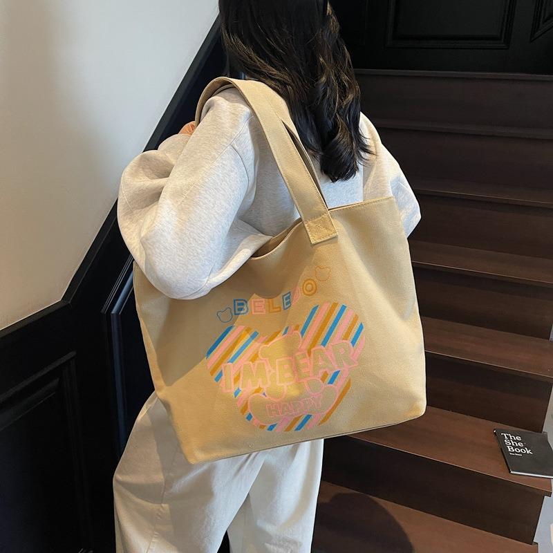 Вместительная сумка-тоут, универсальная мультяшная на плечо, сумка для поездок на работу, женская летняя новая повседневная холщовая сумка