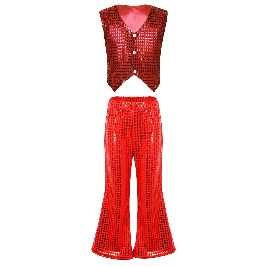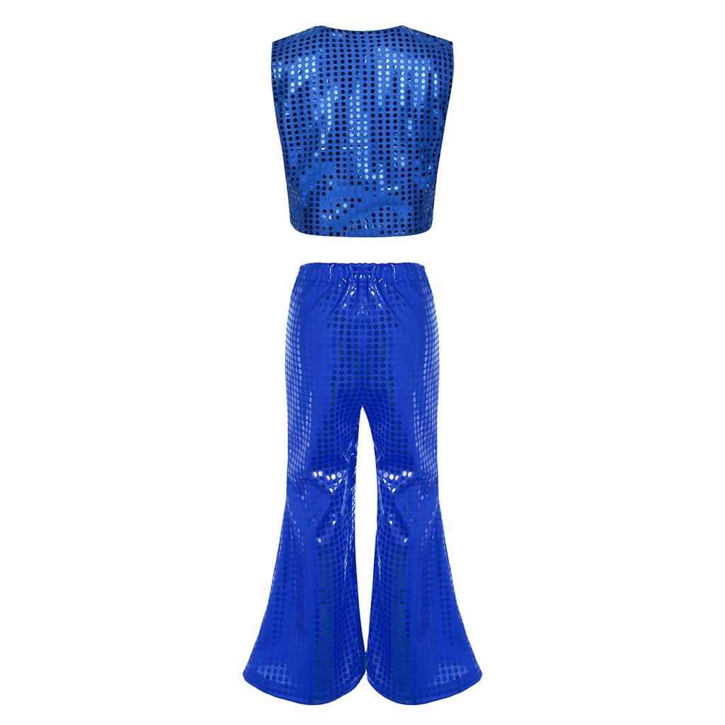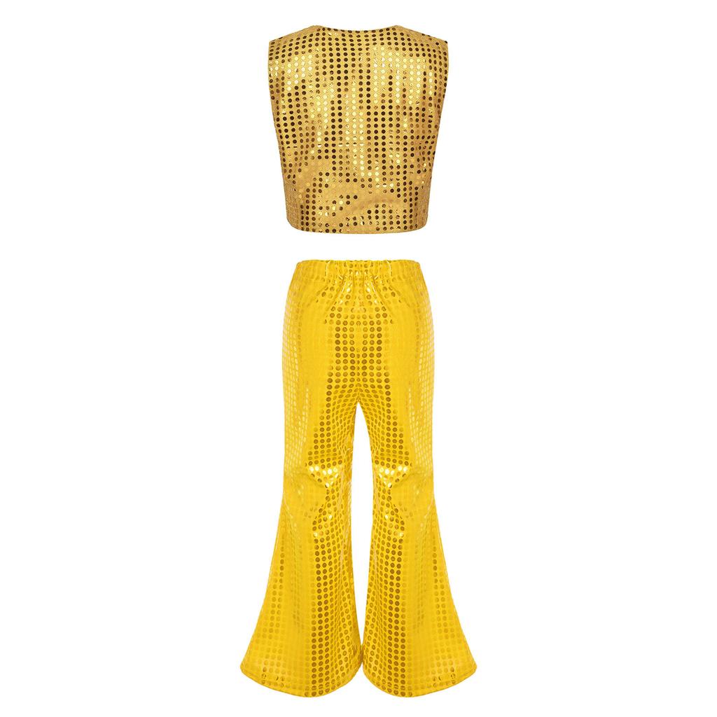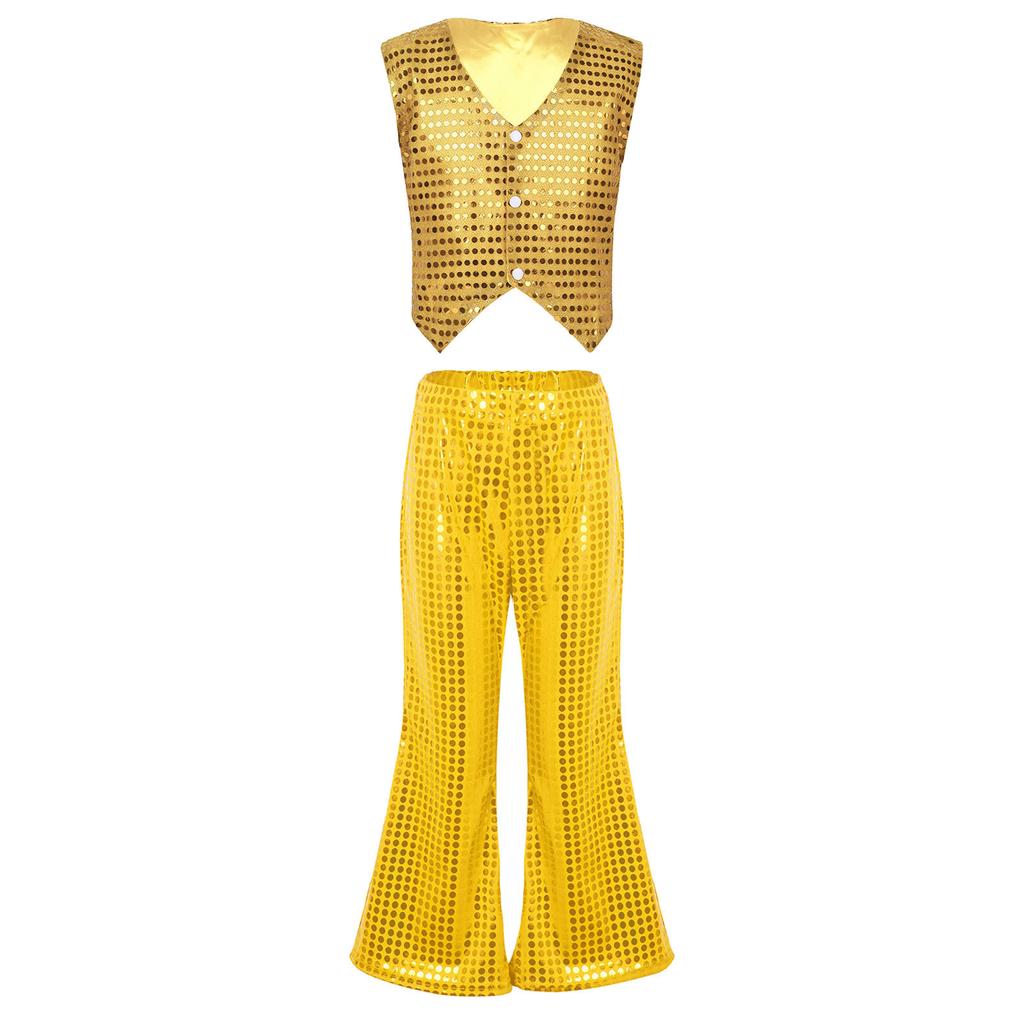 Детский танцевальный костюм Блестящий жилет с пайетками и Свободные расклешенные брюки Эластичный пояс Вечерняя одежда