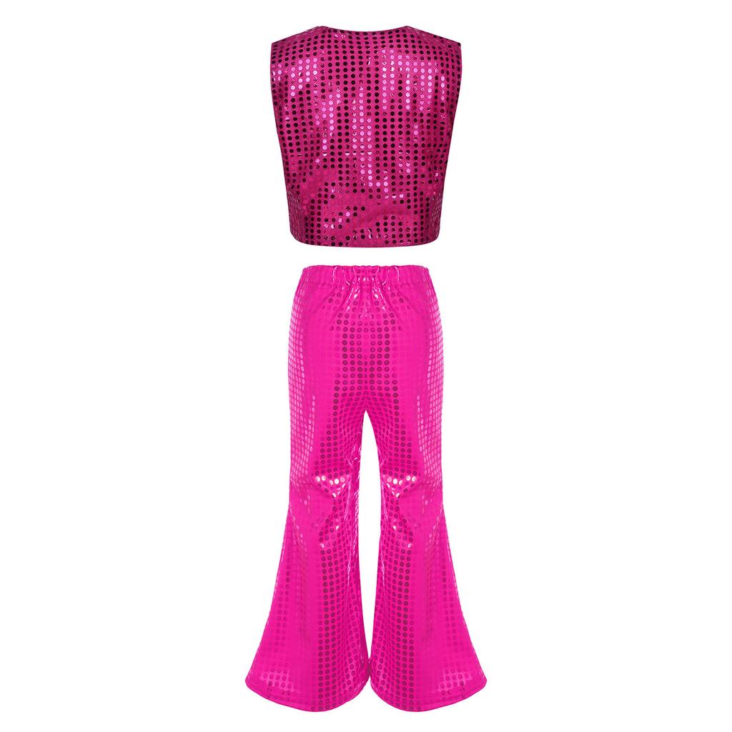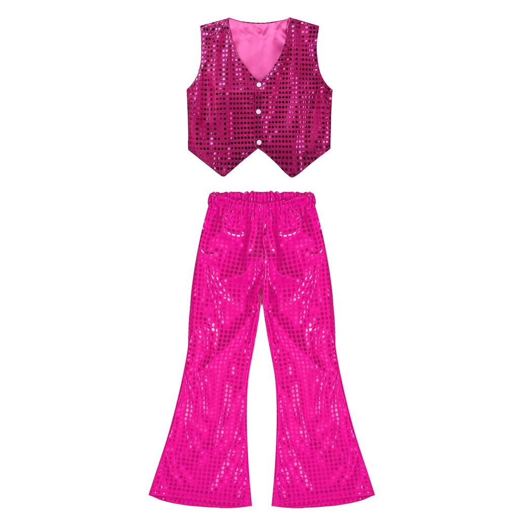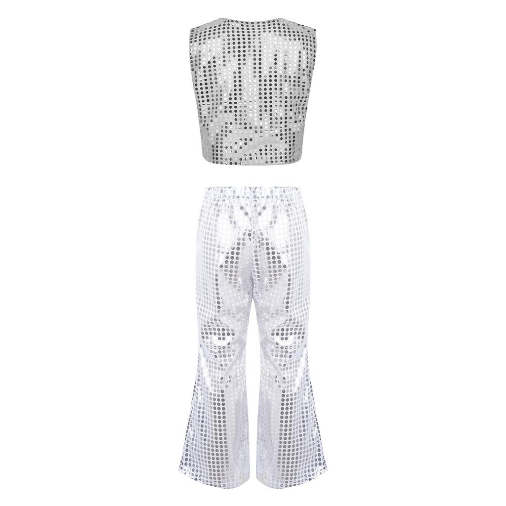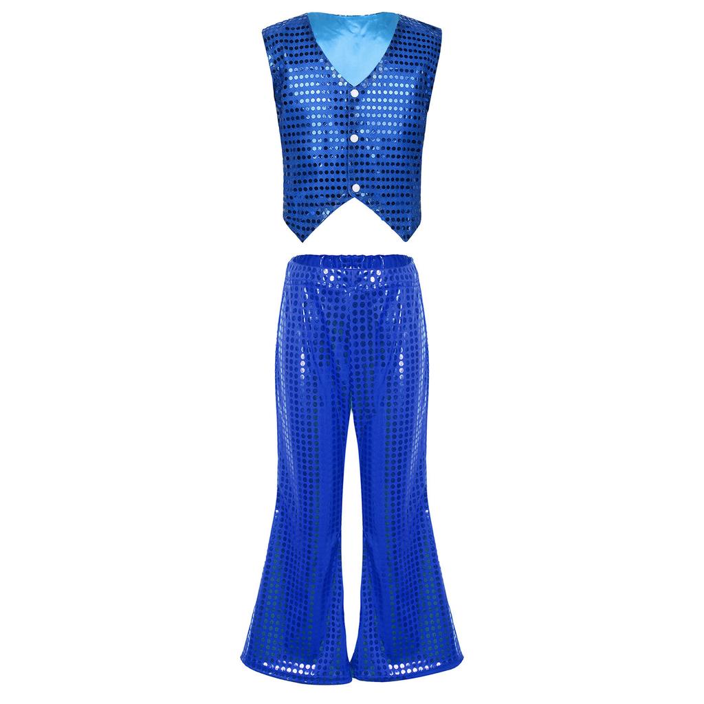Детский танцевальный костюм Блестящий жилет с пайетками и Свободные расклешенные брюки Эластичный пояс Вечерняя одежда