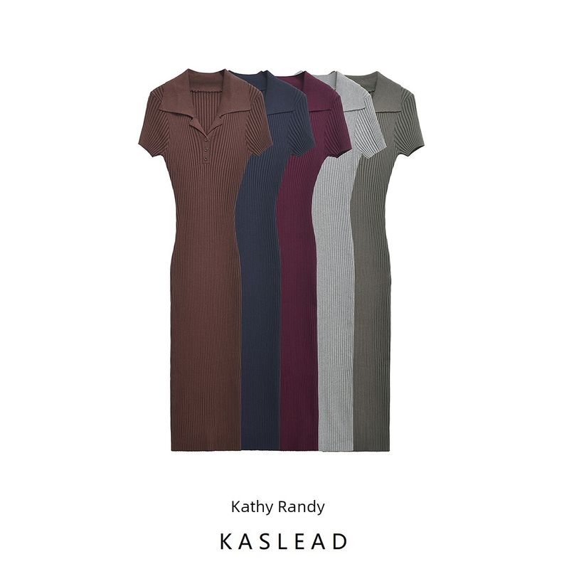 Kaslead New Arrival Women's Clothing Fashion Style Fashion Simple and Thin Rib Knitting Length Dress 3471104