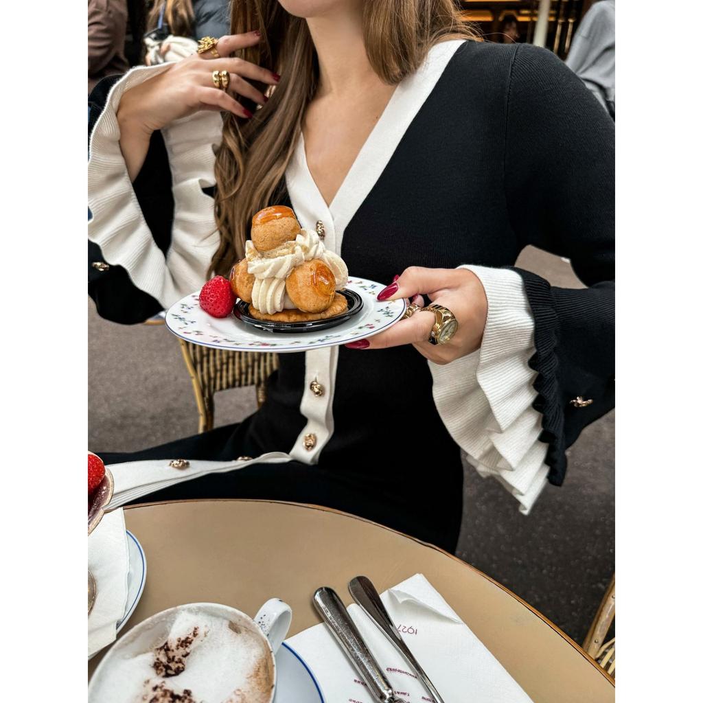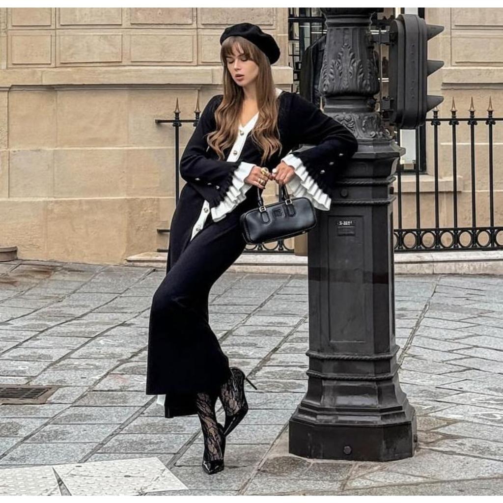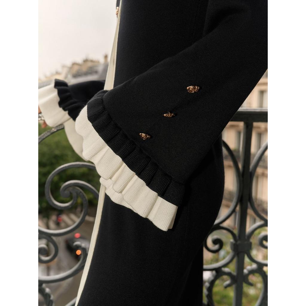 Осенне-зимнее вязаное платье с расклешенными рукавами и V-образным вырезом, модная вставка, контрастные пуговицы, длинная облегающая юбка, юбка-свитер