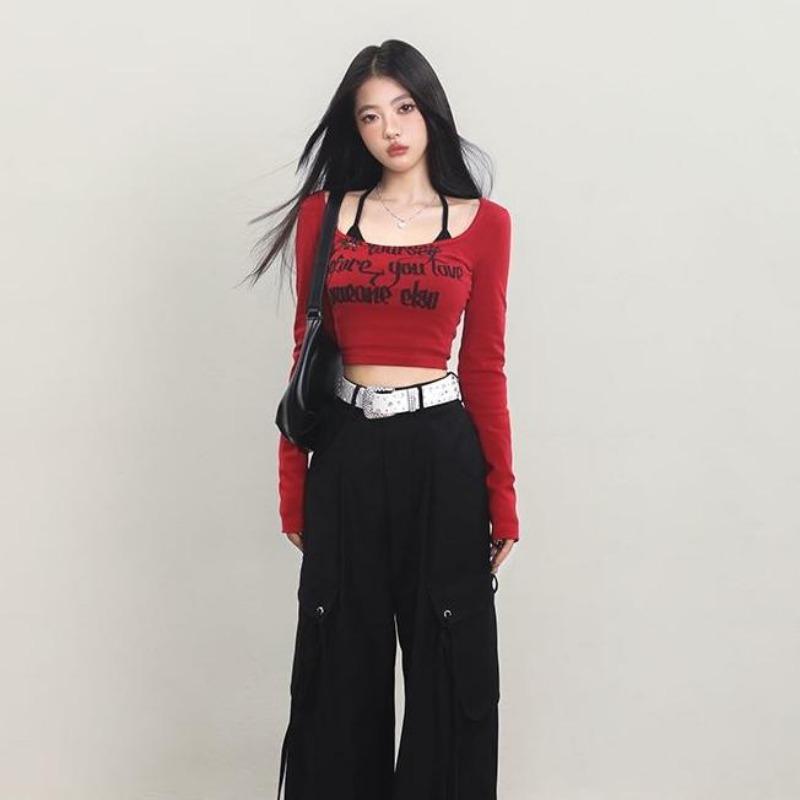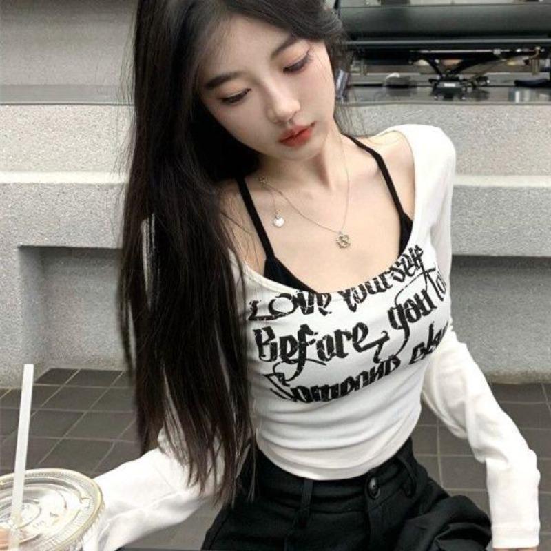 2KWEIRD Шикарные комплекты из двух предметов Футболка Женская одежда Принт букв Квадратный вырез Кроп-футболки Открытая спина Сексуальный жилет Наряды Y2k Костюм