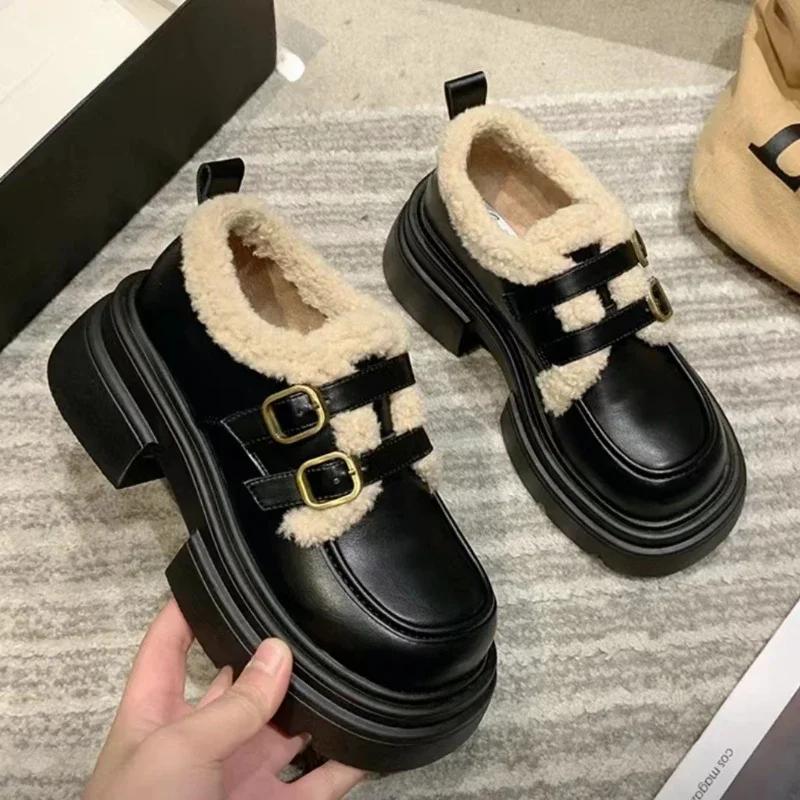 Осенне-зимние туфли из натуральной кожи в британском стиле для женщин, новые студенческие туфли из японского винтажного плюша и теплые хлопковые туфли для женщин