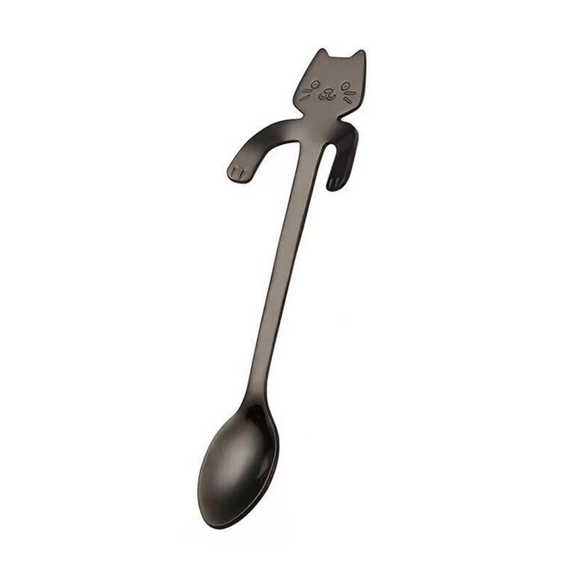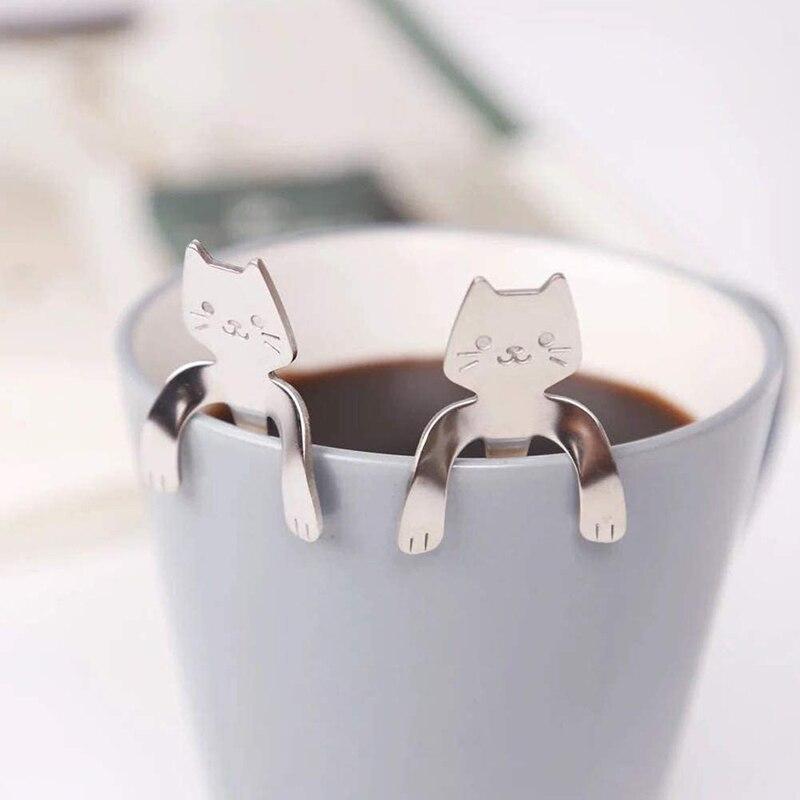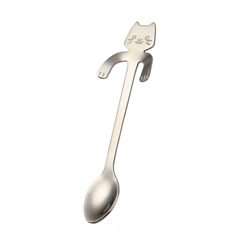 Милый набор чайных ложек из нержавеющей стали в форме кошки в серебряном и золотом цвете — идеально подходит для кофе, чая и десертов