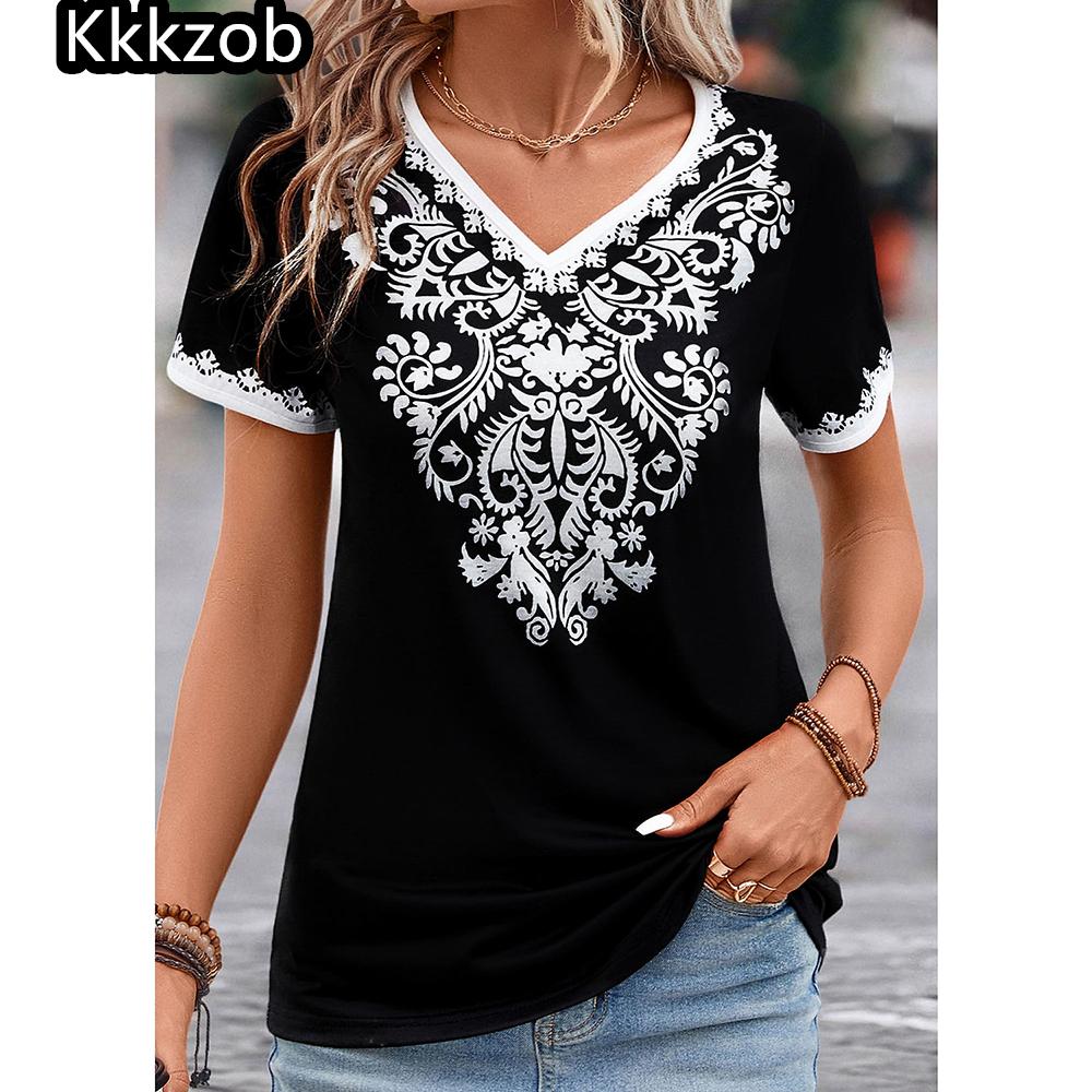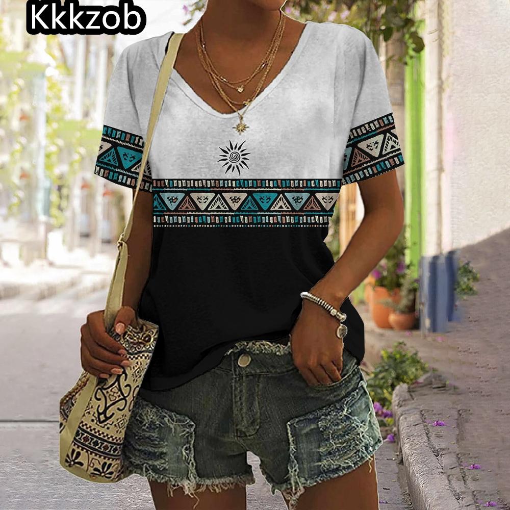 2025 Винтажная рубашка для женщин с принтом тотема в этническом стиле, женская одежда, летние повседневные топы с короткими рукавами, футболки, футболка большого размера