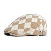 Spring And Autumn Beret Hats Vintage Checkered Brown Coffee Khaki Flat Cap Front Cap Painter'S Cap Cap Man