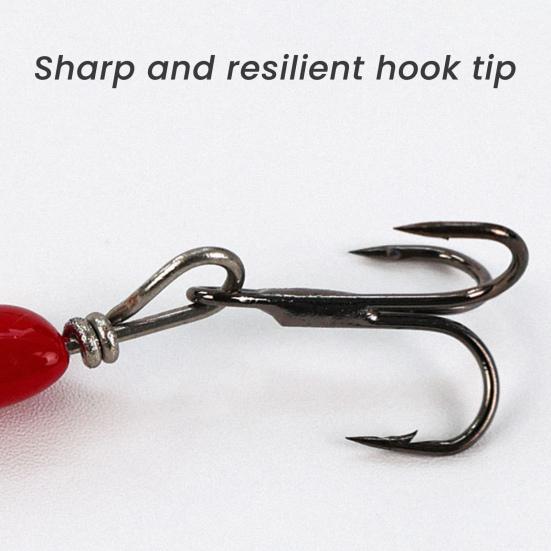 Наша рыболовная приманка оснащена острым рыболовным крючком из высокоуглеродистой стали с бородками, обеспечивающим надежные засечки и предотвращающим сходы для бесперебойной рыбалки.