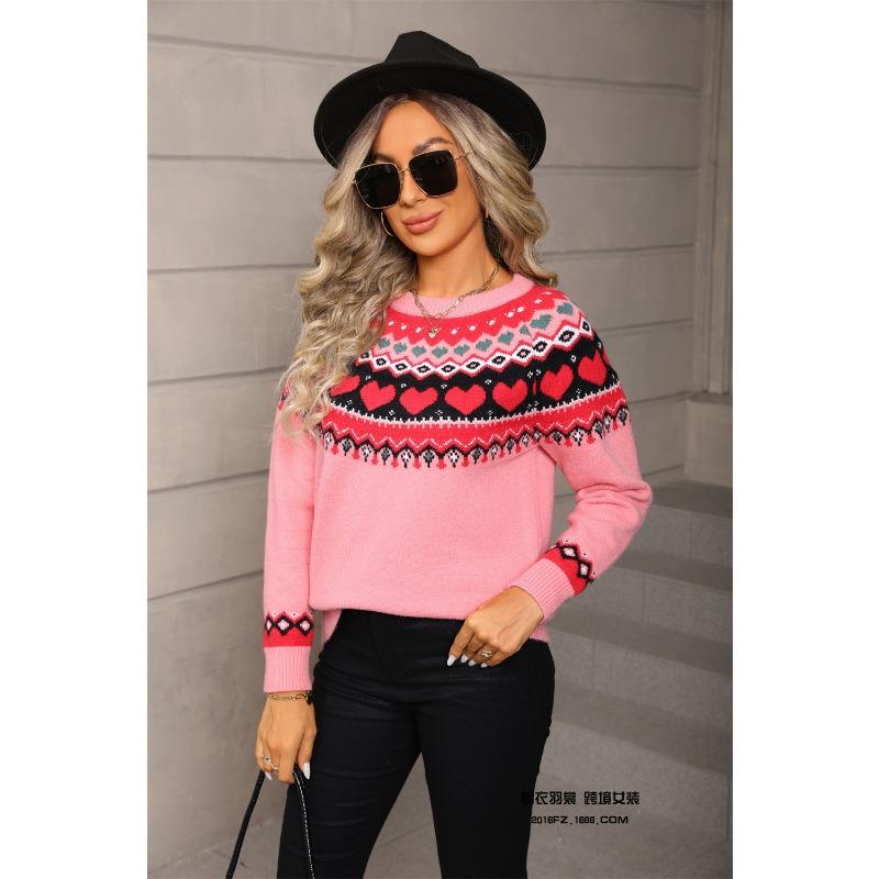 Новая зимняя женская одежда, пуловер свитером в форме сердца, повседневный рождественский жаккардовый вязаный свитер больших размеров