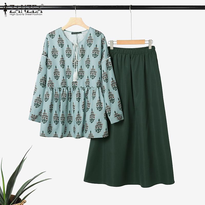 ZANZEA Женская свободная блузка с принтом и длинные юбки, повседневные костюмы-двойки