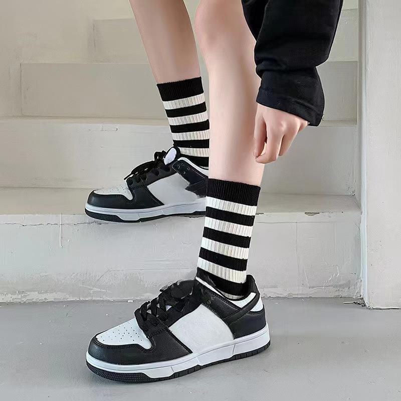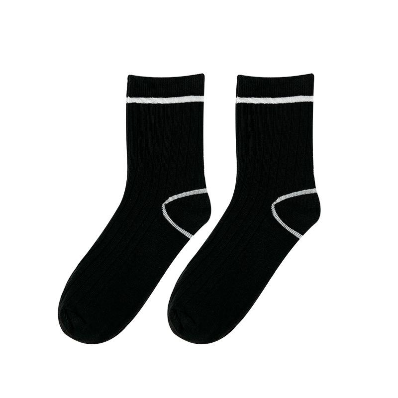 5 пар женских повседневных спортивных носков до середины икры R-образной формы, полосатые хлопковые носки, дышащие и влагоотводящие, модные черно-белые носки