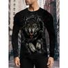 Мужская футболка с длинным рукавом с 3D-принтом волчьей стаи 2025 года, уличный стиль, мужской теплый топ для осени и зимы, повседневная мужская рубашка
