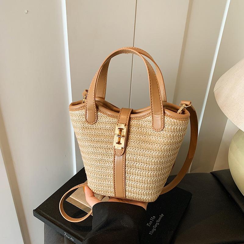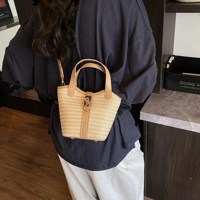 Летняя плетеная сумка ручной работы женская новая пляжная сумка-ведро на плечо простая сумка-мессенджер