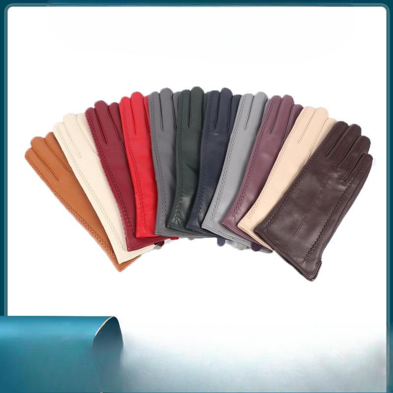 Европейские и американские женские разноцветные перчатки из овчины, модные зимние теплые перчатки из натуральной кожи с подкладкой из вельвета для улицы