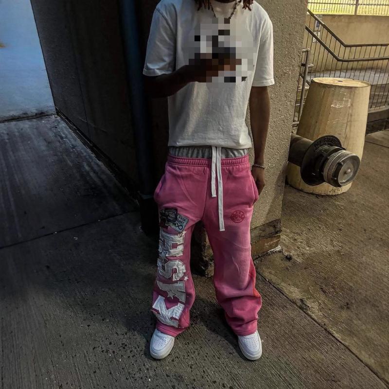 Европейский и американский уличный тренд мужские и женские свободные повседневные прямые брюки из вышитой ткани с принтом — купить товар онлайн с бесплатной доставкой по всему миру!