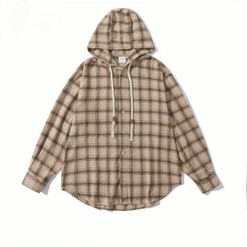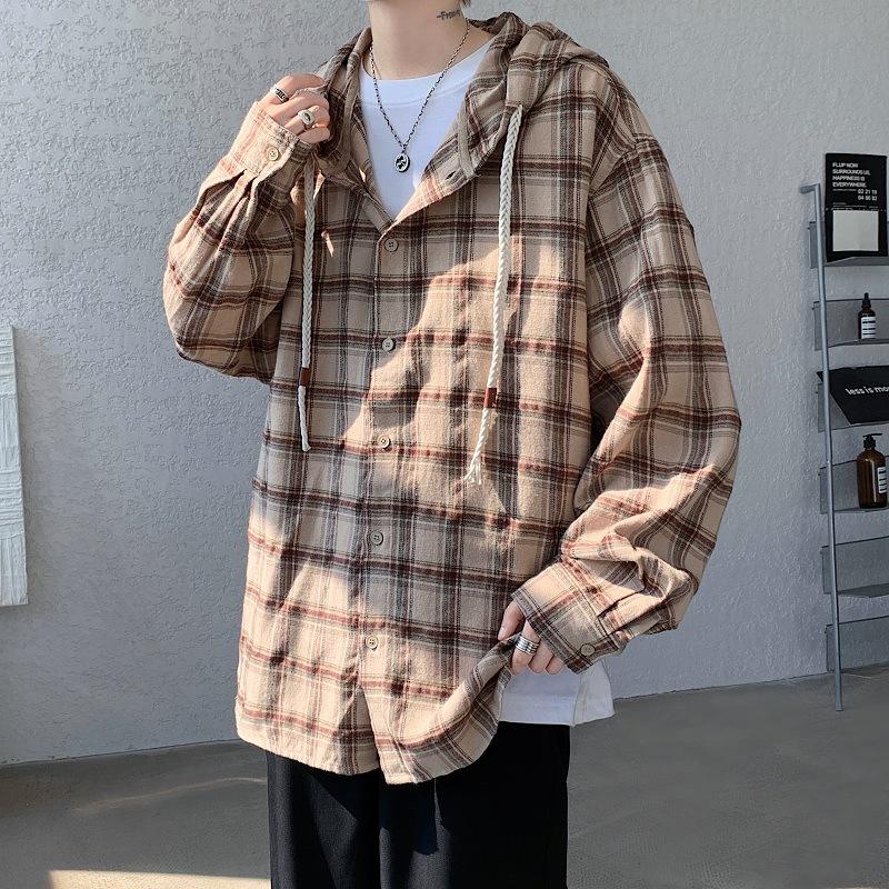 Осень Новая Клетчатая Толстовка с Капюшоном Мужской Дизайн Американский Ретро Клетчатая Рубашка с Длинным Рукавом Куртка