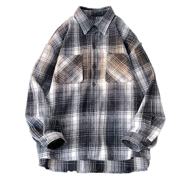 Мужская рубашка в клетку с длинным рукавом, свободная куртка, мужская и женская рубашка, универсальный повседневный японский мужской кардиган