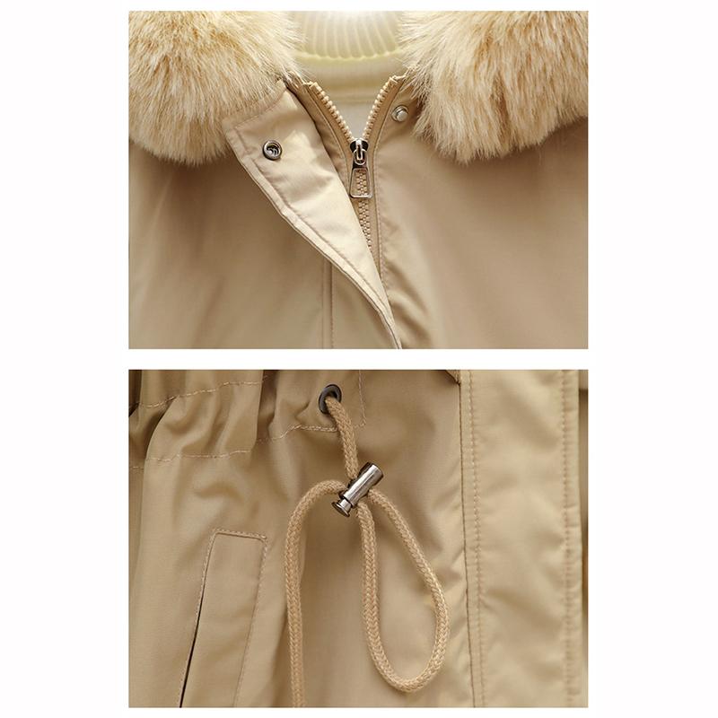 Плюшевая Утепленная Куртка Парка Женская Куртка Женская Зимняя Свободная Меховой Воротник Женская