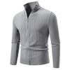 Мужской полосатый свитер-стойка, вязаный свитер, кардиган, куртка на молнии, осенне-зимний, вязаная нить, мужской